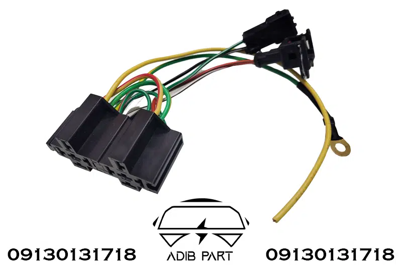در این سوکت یک عدد سیم برق و یک عدد کابلشو منفی و دو سوکت دو خانه نری و مادگی همه کاره پژویی برای وصل شدن به موتور قرار دارد